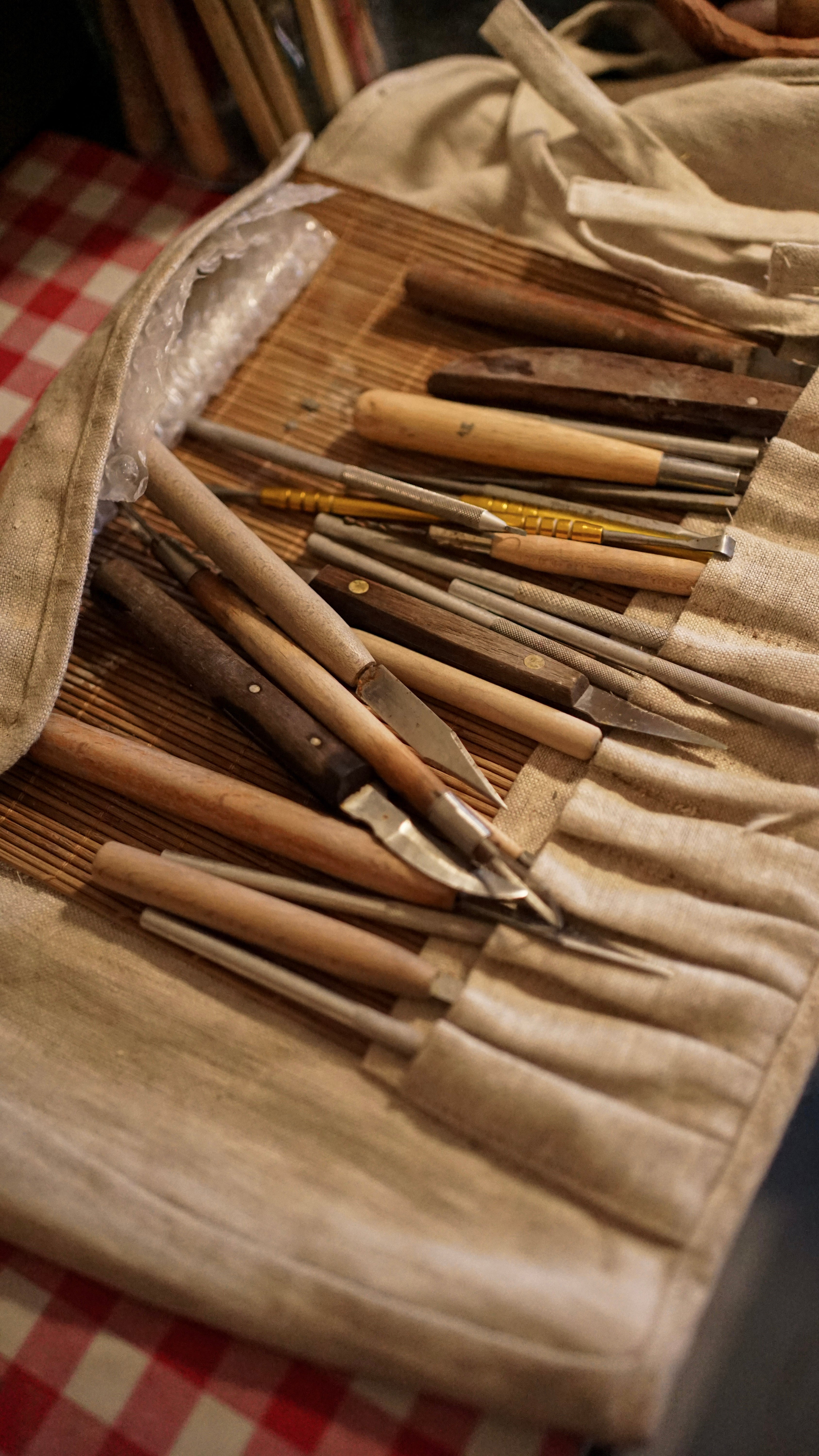 Tout près, les pièces prennent le temps de sécher, alignées dans d’anciennes armoires en bois.