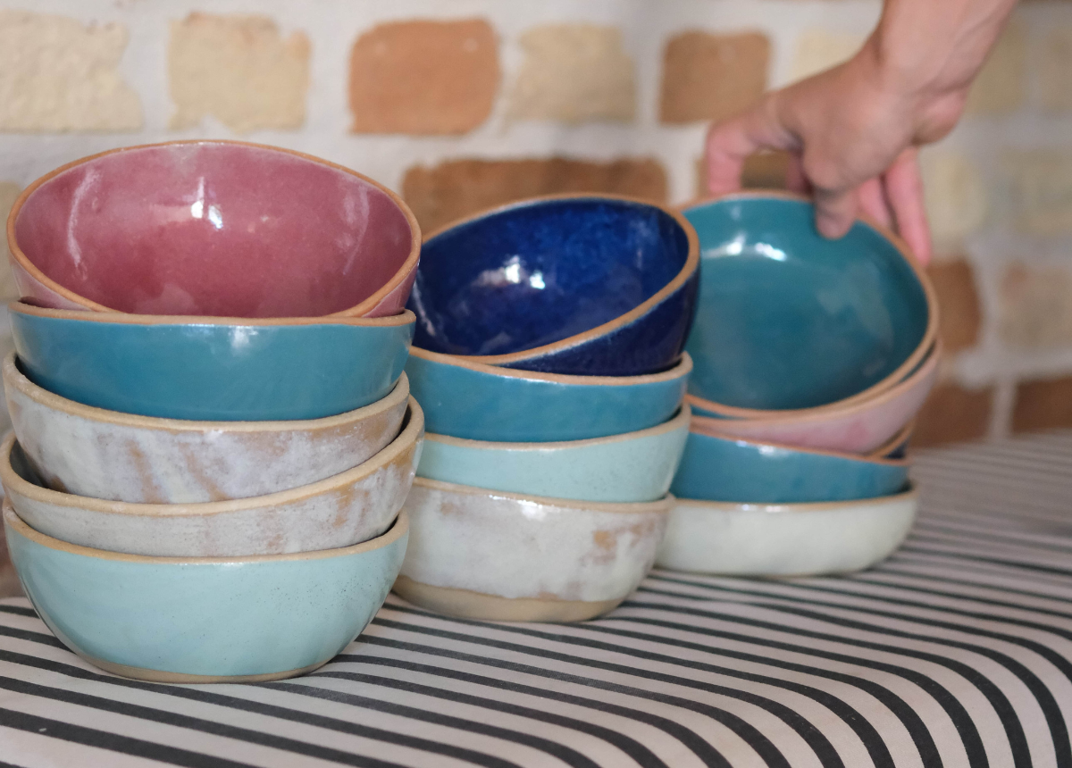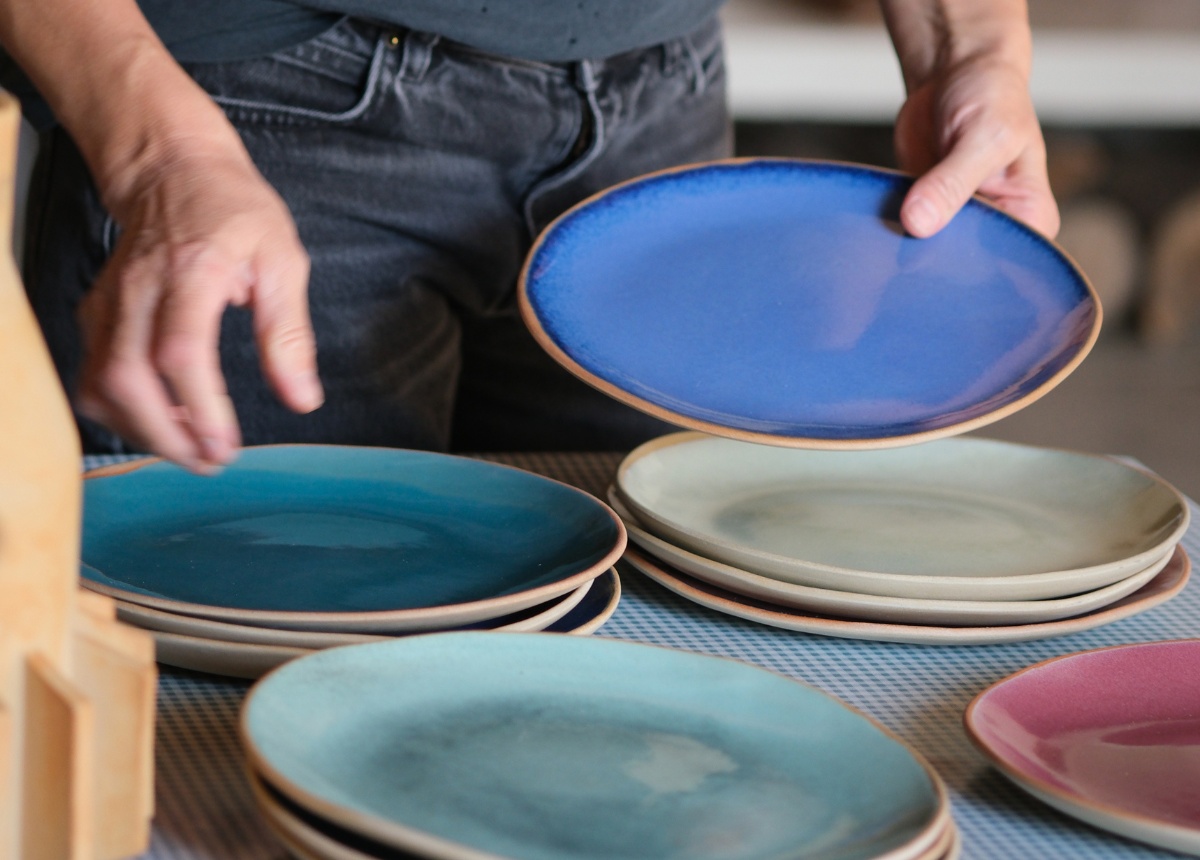 Chaque pièce est façonnée avec le même soin, le séchage et la cuisson lui donnent sa propre personnalité : nuances, légères variations de forme, subtilités de surface…